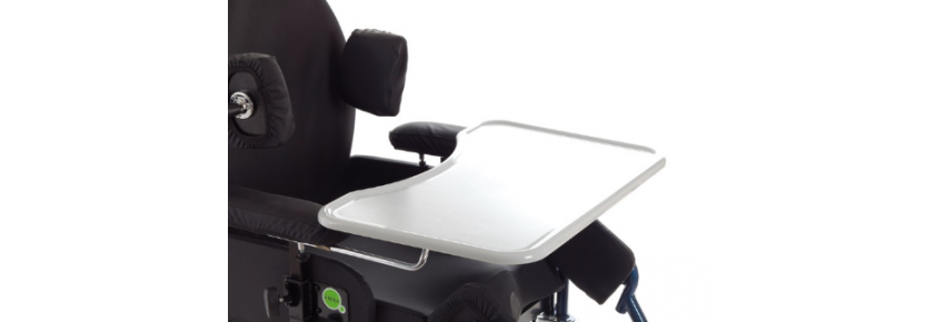 La mesita ergonómica está diseñada para adaptarse a las necesidades individuales de los pacientes, con una forma que se ajusta perfectamente al cuerpo y a las posiciones de quienes están sentados en una silla de ruedas o en la cama. La adaptación ayuda a reducir la presión en los brazos y las manos, mientras permite un fácil acceso a la mesa por parte del paciente. El uso de un diseño ergonómico contribuye a aliviar el dolor o la fatiga durante el uso prolongado.