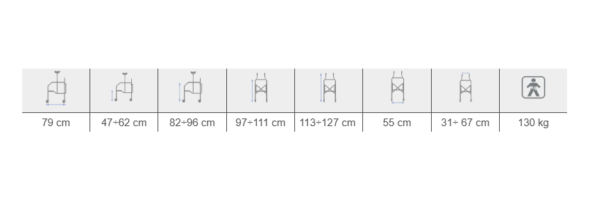 Los soportes axilares acolchados mejoran notablemente la comodidad incluso en caso de uso prolongado, evitando presiones molestas y distribuyendo el peso de manera más ergonómica.