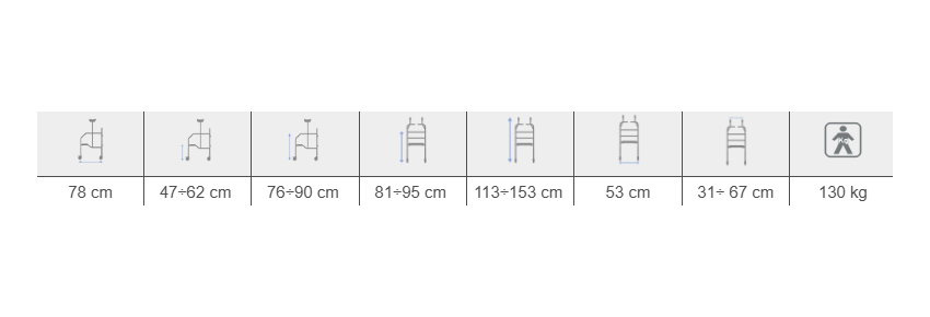 Regulabilidad y Confort: Soportes axilares y manijas ajustables en altura para adaptarse a diferentes complexiones y garantizar una postura correcta.