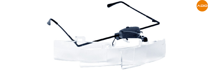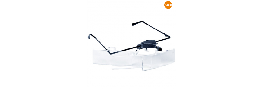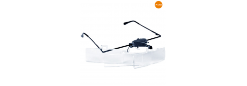 Gafas con 3 lentes intercambiables según el nivel de aumento deseado. Ángulo de inclinación ajustable para un enfoque óptimo del área de trabajo. Punto de luz LED activable mediante interruptor. Peso extremadamente ligero (solo 36 gramos). Suministradas con baterías.