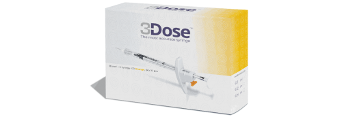 La jeringa 3Dose™ cuenta con una escala clara y fácilmente legible, que simplifica el cálculo de las unidades por mililitro. Las tres diferentes escalas de dosificación (verde, negra y azul) permiten administrar dosis precisas, eliminando el riesgo de errores en el cálculo de las unidades. Esto asegura una administración segura y eficiente, particularmente ventajosa para los médicos que administran inyecciones con menos frecuencia.