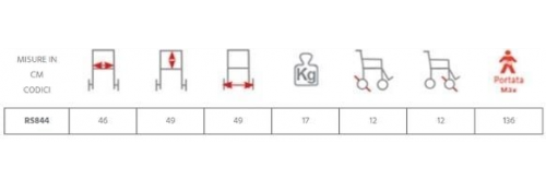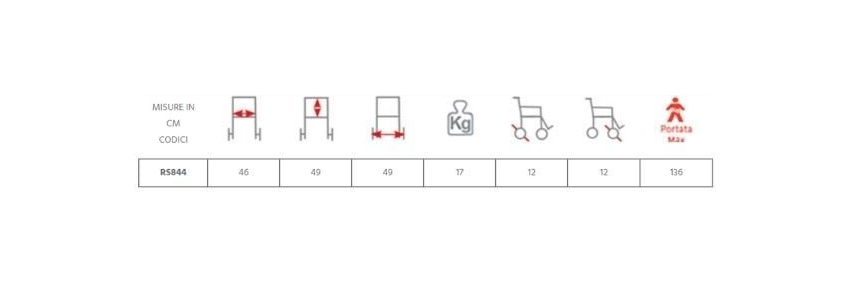 A continuación, las principales características técnicas de la silla cómoda para discapacitados RS844: