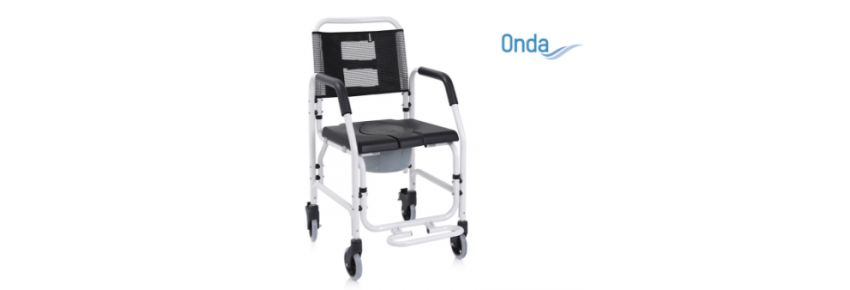 Silla para ducha y WC ligera y versátil. Estructura completamente de aluminio pintado con pintura epóxica.