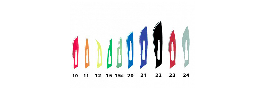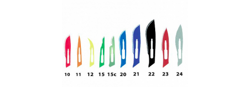 Le Scalpel de Sécurité Stériles est disponible avec les lames suivantes :