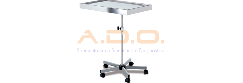 Le plateau en acier inox 18/10, amovible avec le cadre, offre une surface résistante, hygiénique et facile à désinfecter, idéale pour le support d'instruments chirurgicaux et de matériaux stériles.
