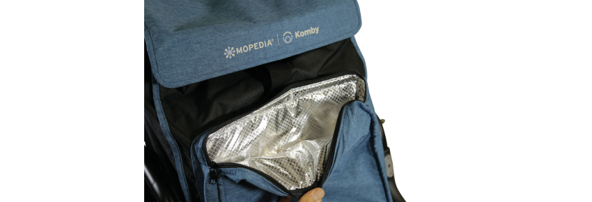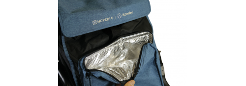 Au centre du projet Komby se trouve son grand sac avant, conçu pour un usage quotidien. En plus de l'espace généreux pour transporter des effets personnels ou de petits achats, le sac est doté d'un compartiment thermique, parfait pour garder frais aliments et boissons, comme montré dans les images du produit. C'est l'accessoire idéal pour ceux qui ne veulent pas renoncer à l'autonomie lors des courses ou au marché.