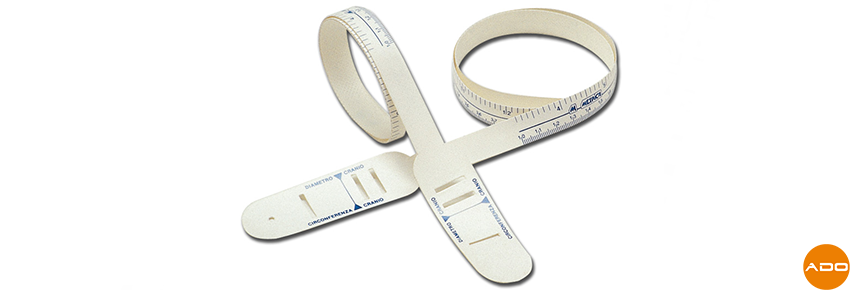 Craniomètre fabriqué en matériau plastique spécial, souple, non extensible. Mesure la circonférence et le diamètre de la tête d'un enfant (jusqu'à 60 cm).
