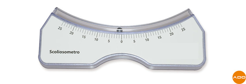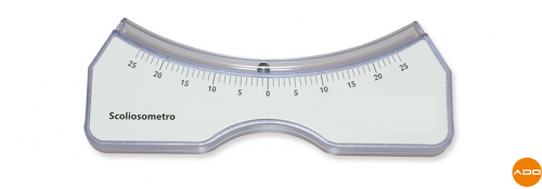Petit instrument en plastique pour évaluer le niveau de scoliose, c'est-à-dire la déviation de la colonne vertébrale sur le plan latéral, gauche et droit. En plus de mettre en évidence la gravité du défaut, il permet de comparer dans le temps les rapports établis et donc d'obtenir une définition précise de l'évolution du processus pathologique détecté, avec une limitation des examens radiographiques. La petite sphère, qui oscille à l'intérieur d'un interstice, indique directement les degrés du dénivelé par rapport au plan horizontal.