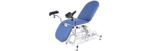 The table comes complete with 360° rotating leg supports, height adjustable for optimal management during the examination, and a stainless steel liquid collection tray for easy cleaning and hygiene.