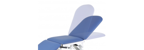 The structure is made of painted white steel tubing, ensuring robustness, while the polyurethane padding (density 30 kg/m³) with a thickness of 5 cm guarantees maximum comfort for the patient. The washable synthetic leather cover is self-extinguishing (Class 1 IM), compliant with safety standards.