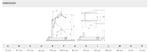 The structure of the RI826 lifter is made of painted steel, providing the device with robustness and durability over time. The design is engineered to ensure easy maneuverability, thanks to the presence of four swivel wheels with a diameter of 10 cm, two of which are equipped with brakes to ensure stability during use.