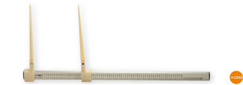 Caliper for measuring newborns made of oxidized duralumin, graduated from 0 to 90 cm with notches every 5 mm. Weight: 300 g. Certified by the Metrology Office.