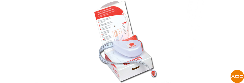 Professional measuring tape in a box with percentile ruler for pediatric use.