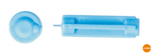 Sterile, ultra-fine, single-use round lancets for use with lancing devices.