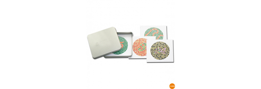 10 pediatric color blindness test plates, individually packaged in a convenient aluminum box. The color blindness test plates are designed to provide a quick and accurate tool for testing congenital color blindness.