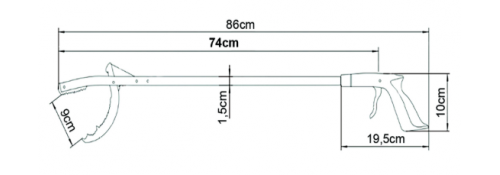 The reaching aid is made of anodized aluminum, a lightweight yet extremely durable material. This makes it ideal for daily use, easy to handle, yet solid and long-lasting. The head of the aid is equipped with serrated ends, ensuring a stable and secure grip even on small objects, such as caps, bottles, or kitchen utensils. The aid is designed to lift objects with a maximum weight of 2 kg, making it perfect for most household or outdoor uses.