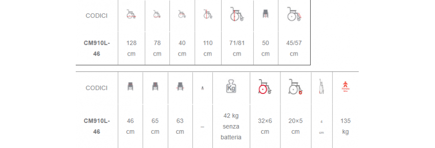 La carrozzina elettrica CM910, nella versione con luci, è costruita in alluminio, un materiale che la rende leggera e facile da trasportare. Il peso della carrozzina, senza batteria, è di 42 kg, consentendo una maneggevolezza ottimale. La seduta e lo schienale sono realizzati in nylon nero imbottito, con lo schienale che offre una funzione reclinabile da 90° a -110°, per garantire una postura corretta e un comfort personalizzabile per l’utente.