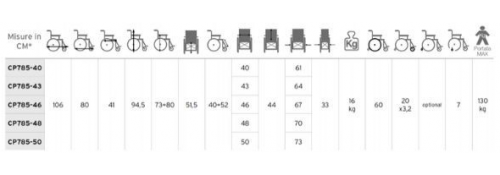 Il telaio della carrozzina CP785 è realizzato in alluminio verniciato a polveri epossidiche, un materiale resistente alla ruggine e particolarmente leggero, che assicura una lunga durata nel tempo. Essendo pieghevole, la carrozzina può essere facilmente richiusa, riducendo al minimo l’ingombro e rendendo il trasporto un'operazione semplice e veloce. Quando chiusa, l'ingombro massimo è di soli 33 cm, permettendo di riporla comodamente in spazi ristretti, come nel bagagliaio di un'auto o in un armadio.
