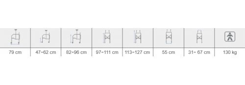 Con una portata massima di 130 kg, questo deambulatore è adatto a utenti con varie corporature. È ideale per l’utilizzo interno ed esterno, su superfici regolari dove tutte e quattro le ruote possano mantenere contatto costante con il terreno.