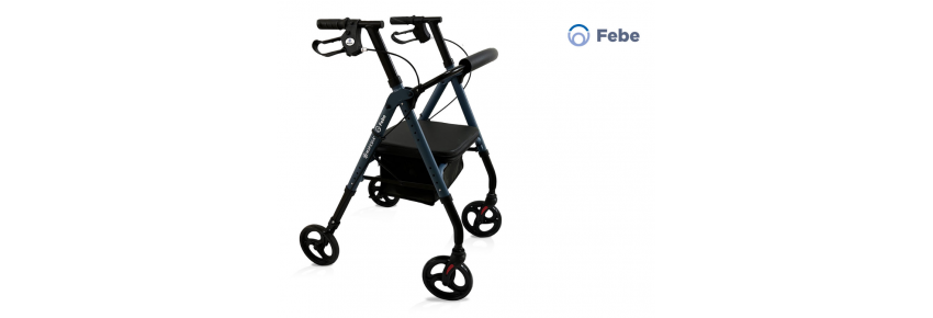Rollator pieghevole in alluminio DOPPIA REGOLAZIONE – FEBE – Schienale ribaltabile ed estraibile – Seduta imbottita e regolabile in altezza – Borsa portaoggetti in tessuto