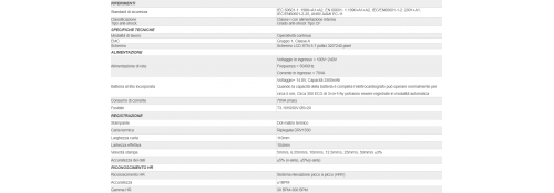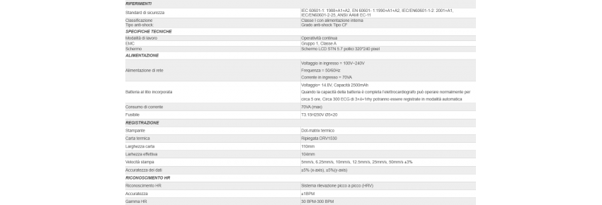 Memoria interna: Fino a 100 ECG digitali memorizzabili (modello LTD445S), con possibilità di trasferire i dati a PC tramite porta USB o tramite porte RJ45 e RS-232.