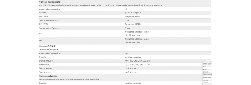 Il dispositivo offre 40 programmi pre-impostati che permettono di trattare diverse problematiche in modo semplice ed efficace. È possibile selezionare i parametri a seconda delle necessità terapeutiche.