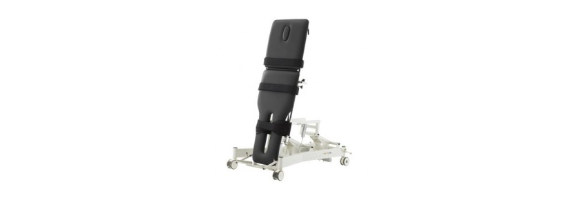 Lettino Tilt elettrico per postura eretta ideale per neuroriabilitazione, con regolazione altezza e inclinazione tramite telecomando. Dotato di cinghie di sicurezza, motore affidabile e rivestimento ignifugo resistente. Massima stabilità, comfort e sicurezza per l’operatore e il paziente.